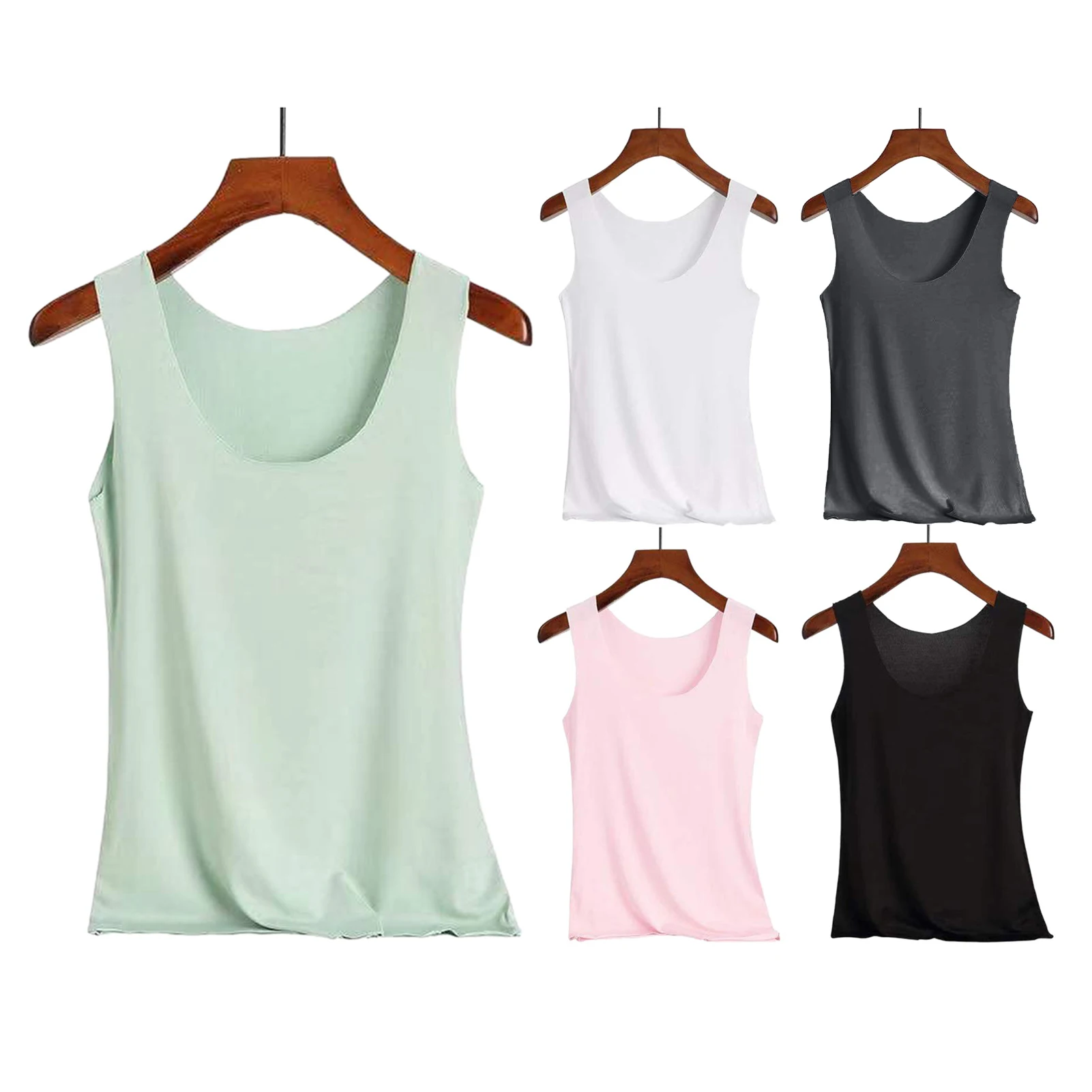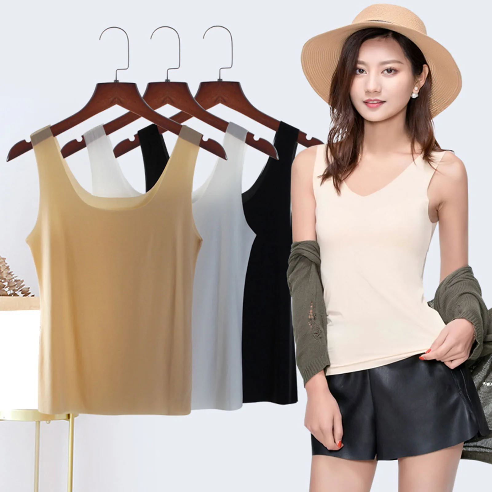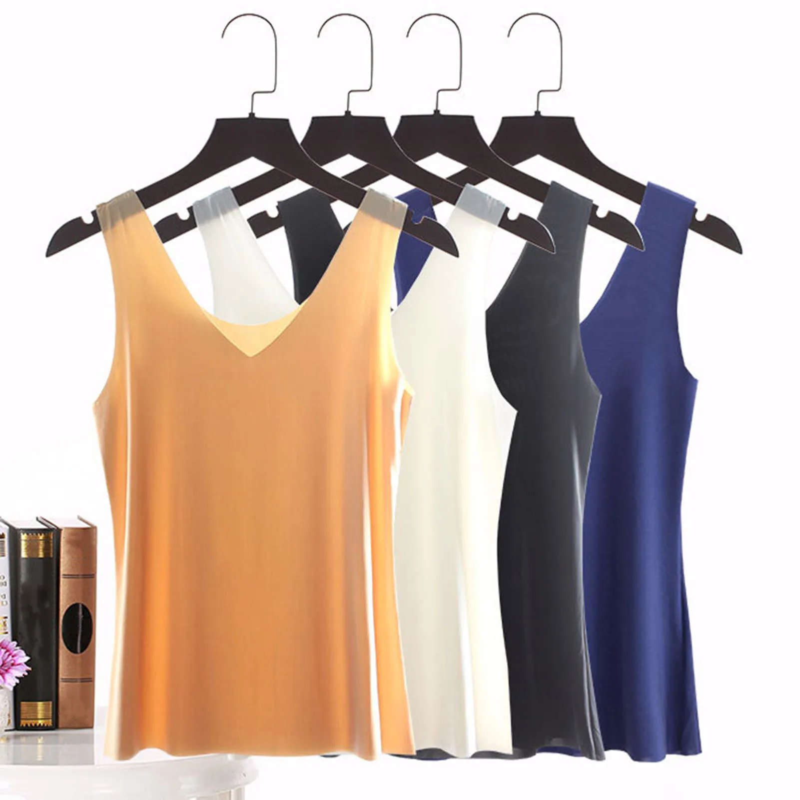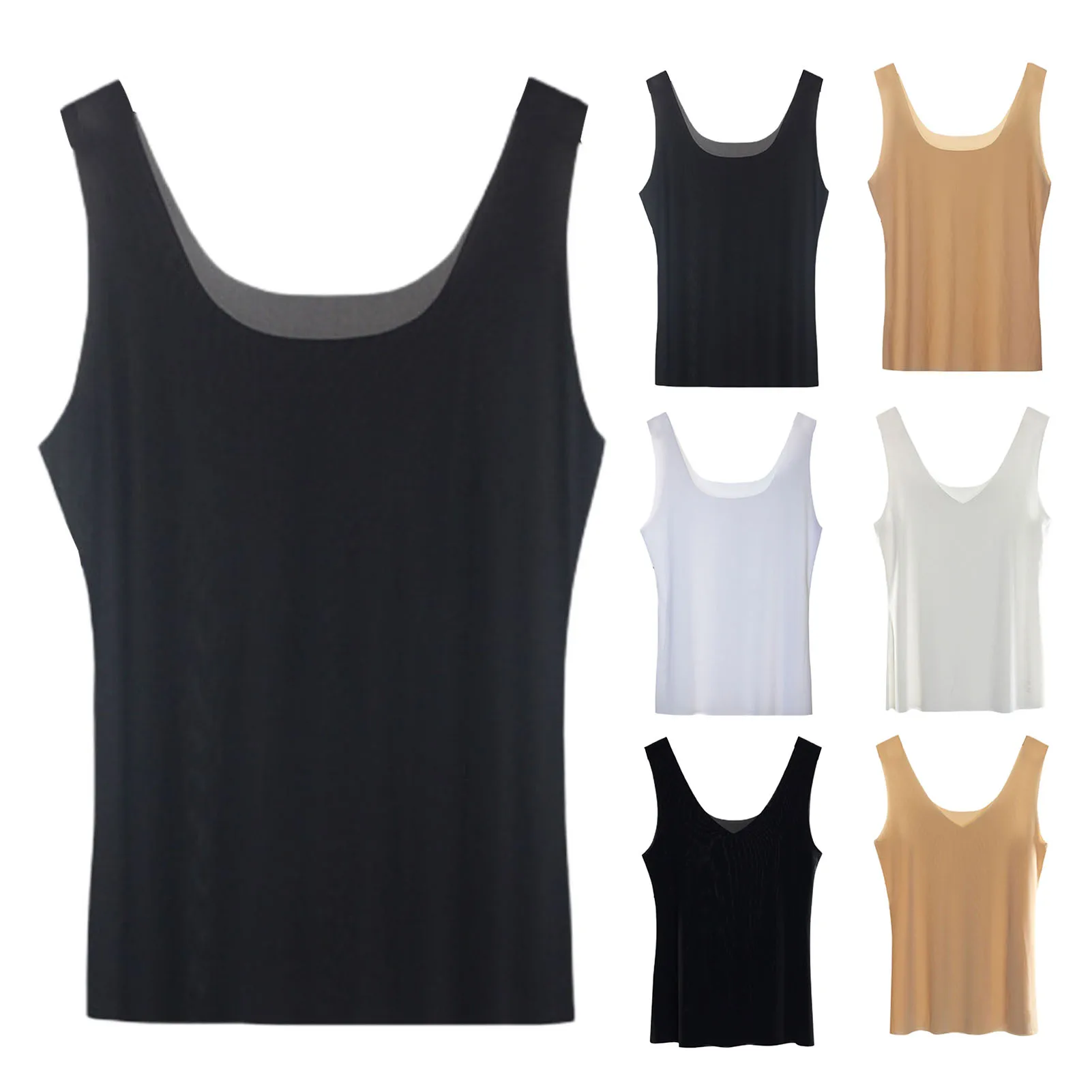 Features: Thin, Solid Color, Stretchy, Seamless, Comfortable & Soft, Tank Top, V/O Neck