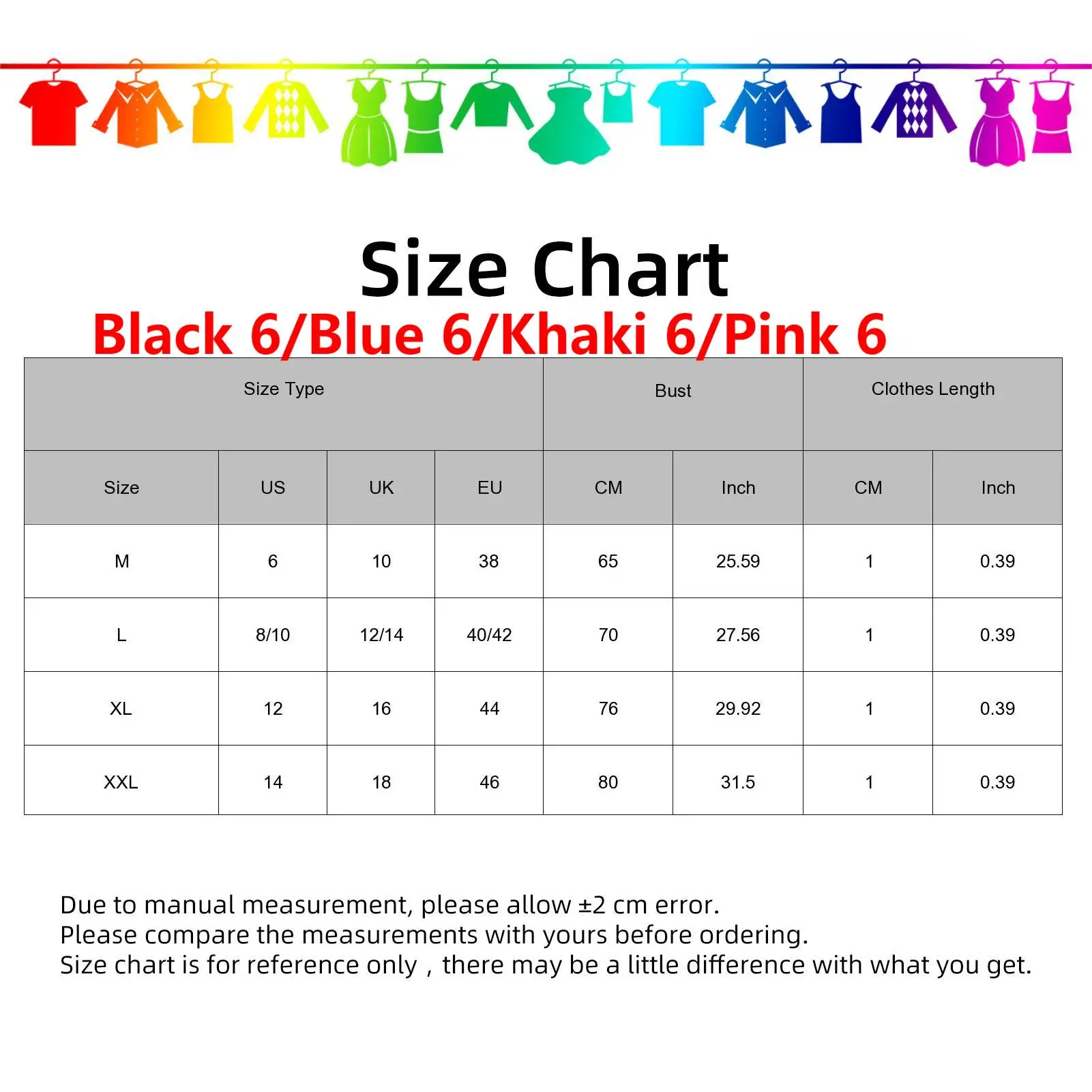 M: Bust: 65cm/25.59", Clothes Length: 1cm/0.39" (Approx.)