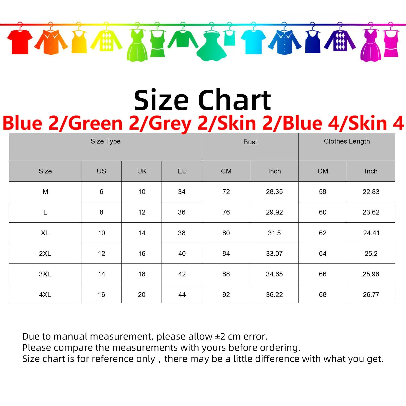 4XL:Bust: 92cm/36.22", Clothes Length: 68cm/26.77" (Approx.)