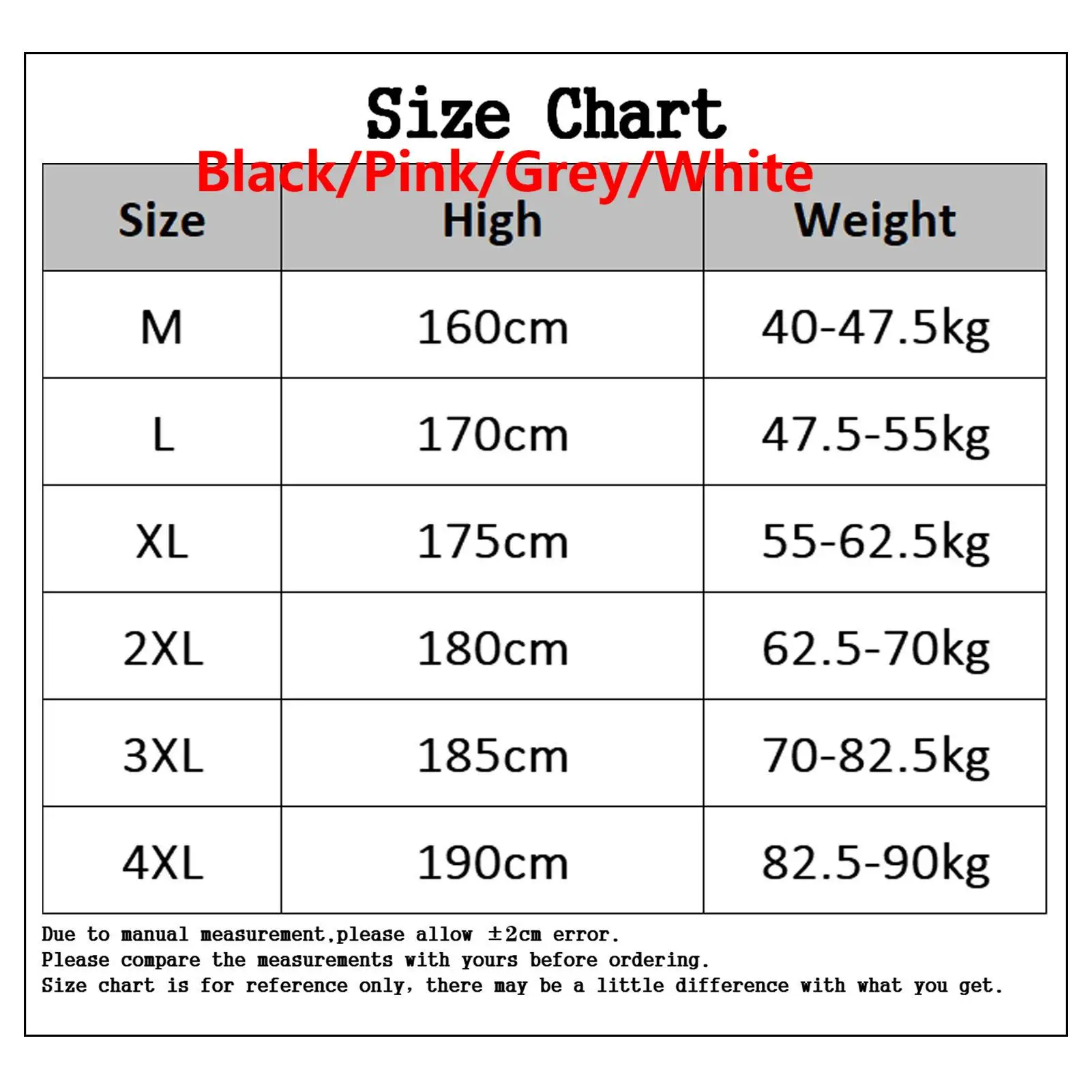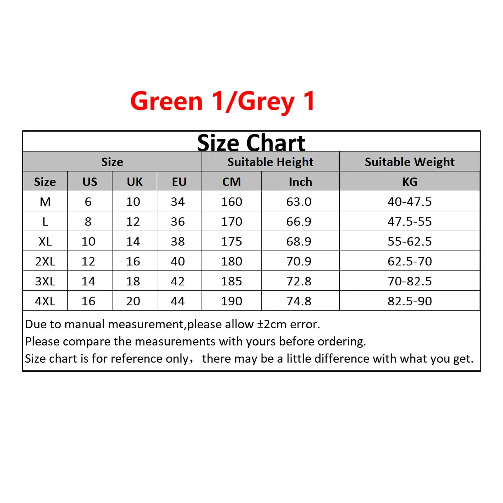 4XL:Suitable Height: 190cm/74.8", Suitable Weight: 82.5-90kg (Approx.)