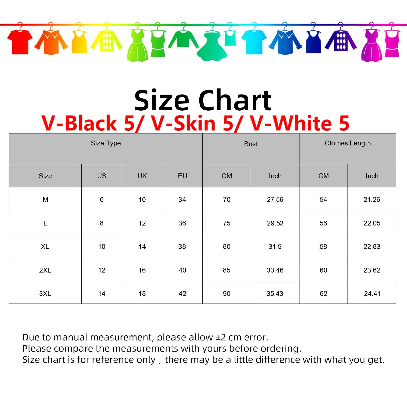 3XL: Bust: 88cm/34.65", Clothes Length: 66cm/25.98" (Approx.)