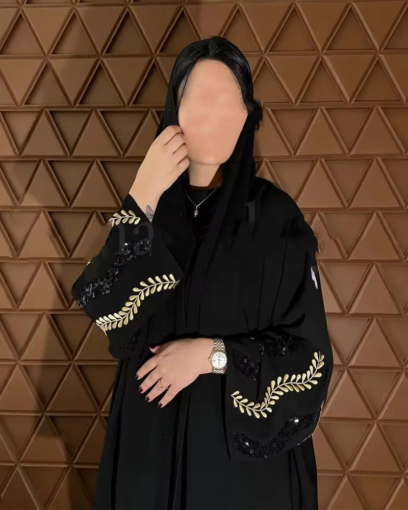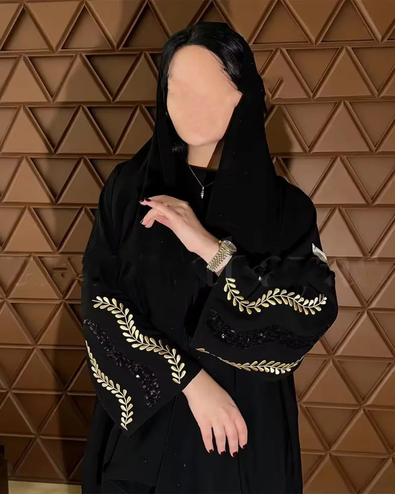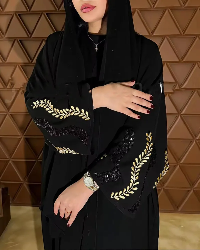 2025 New Eid Abaya Designs Flower Sequin Embroidery Kimono Abaya Dresses Women Muslim Modest Abaya Islamic Clothing