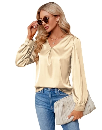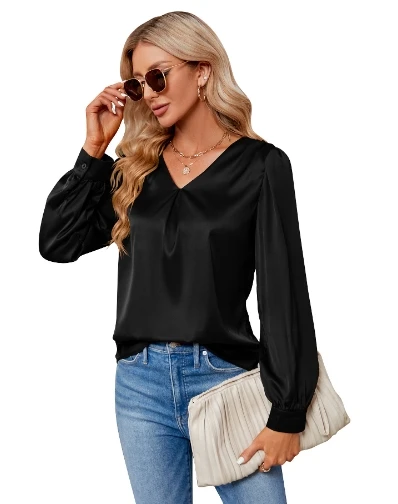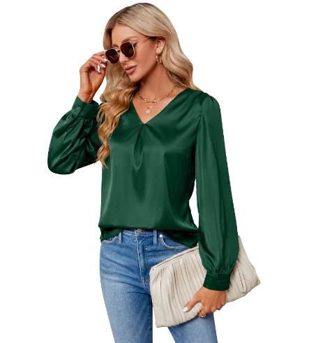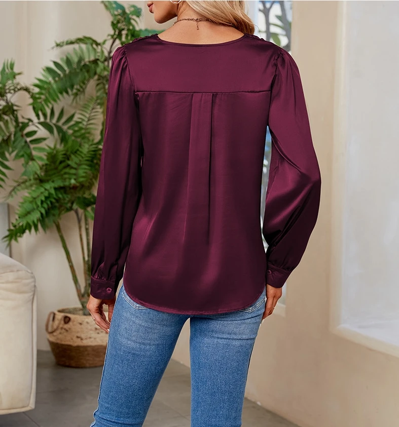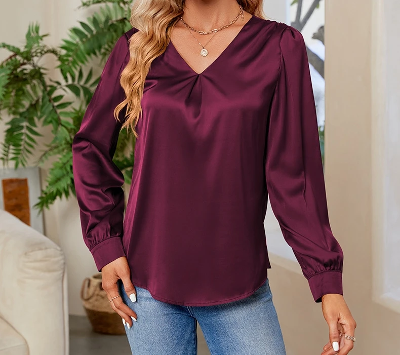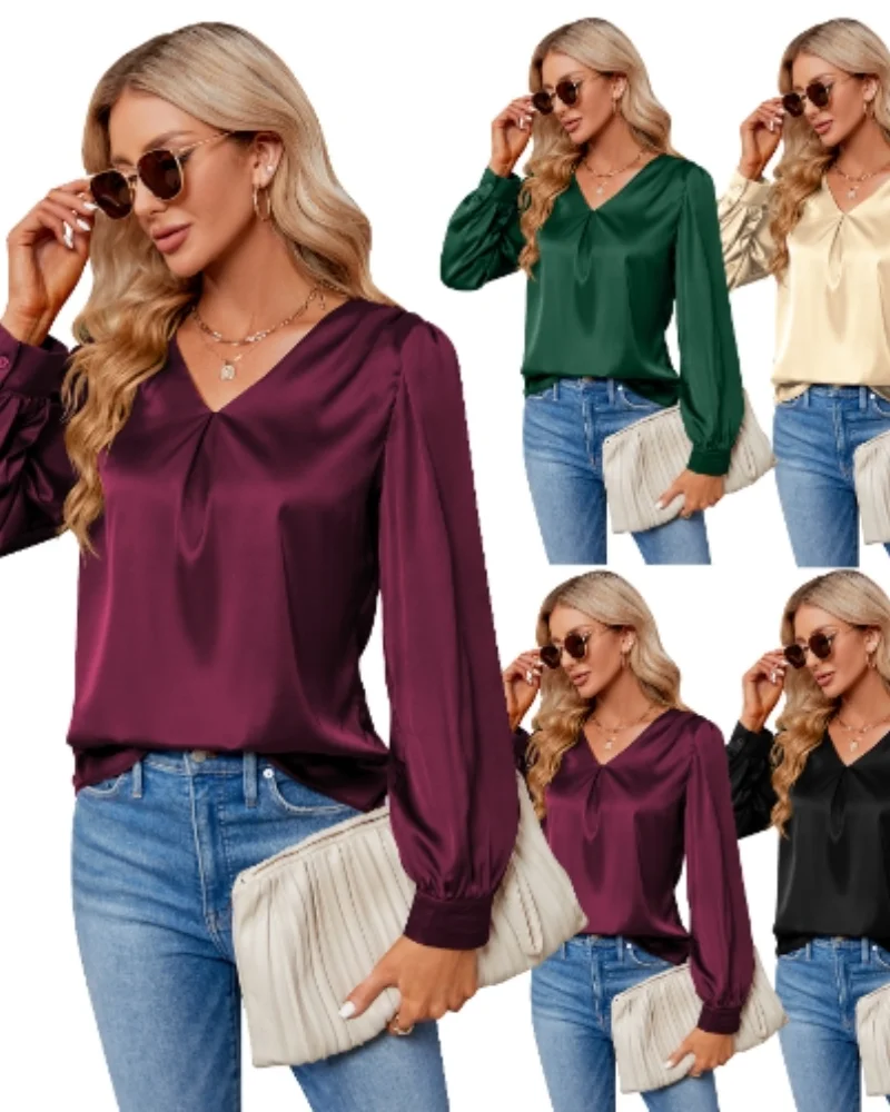 Long sleeved V-neck solid color loose shirt women's shirt 2025 autumn and winter new trend long sleeved top women's clothing